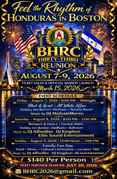 In community with New Orleans, Florida, New York, and California Committees. Boston Honduran Reunion Presents the 33rd annual family and friends Honduran Reunion Weekend.